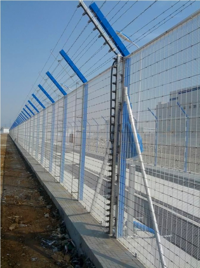 光纤入侵探测系统FD系列沿围栏周界上的铁丝网布防(垂直段与斜撑部分均进行布防)。当有人攀爬或剪切铁丝网,引起铁丝网的振动从而触发...